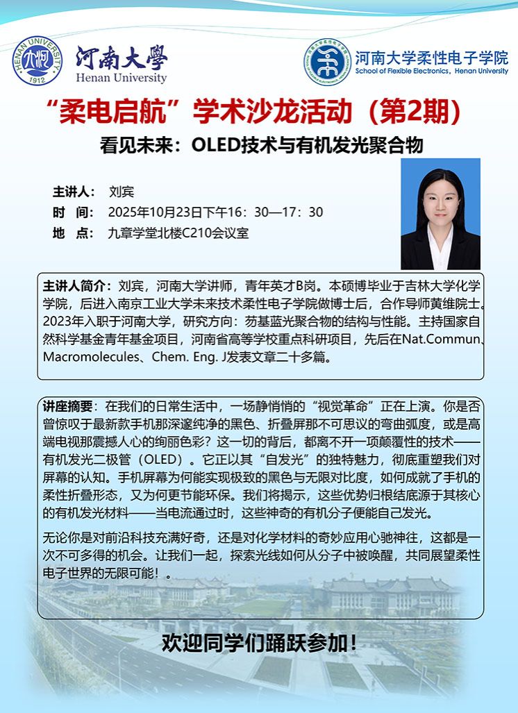 [“柔电启航”学术沙龙] 第2期 看见未来:OLED技术与有机发光聚合物