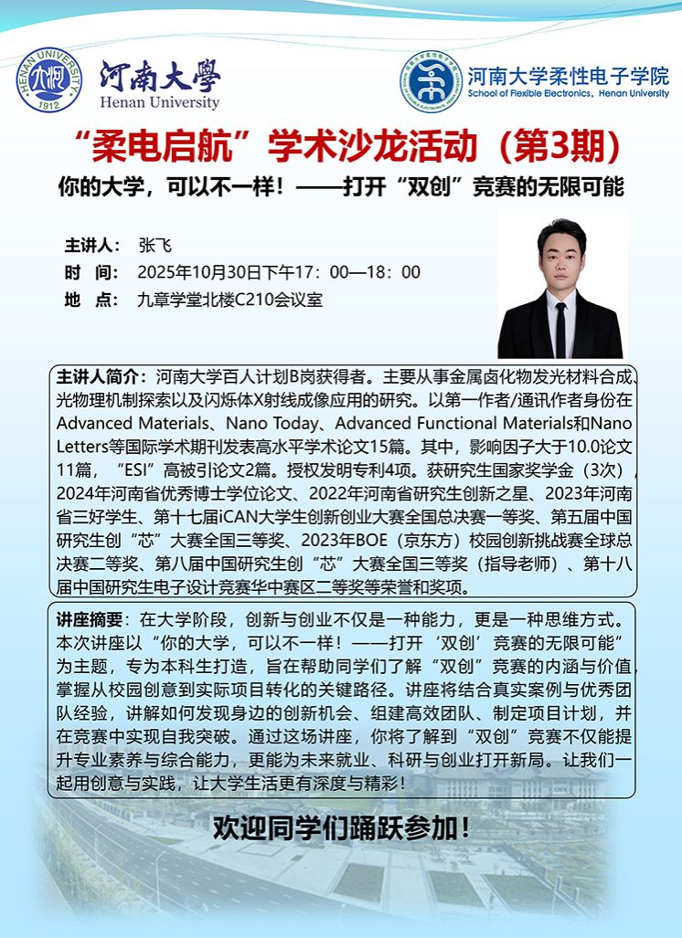 [“柔电启航”学术沙龙] 第3期 你的大学,可以不一样——打开“双创”竞赛的无限可能